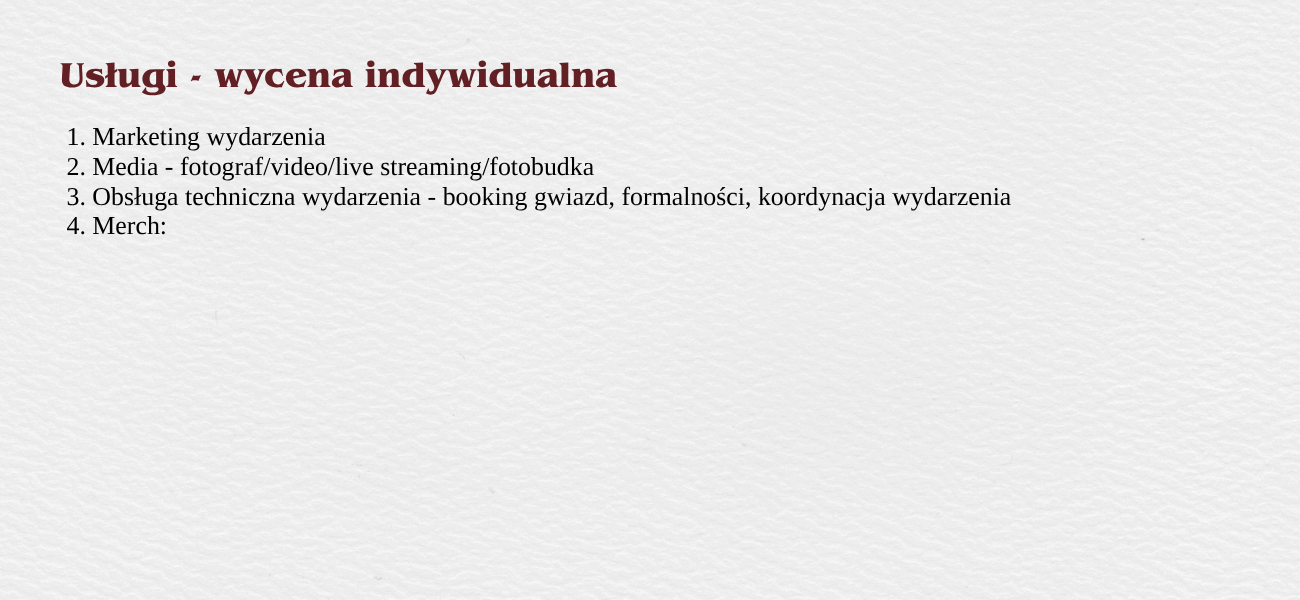 🎯 Doradztwo i strategia – pomożemy dobrać artystę idealnie dopasowanego do charakteru Twojego wydarzenia.